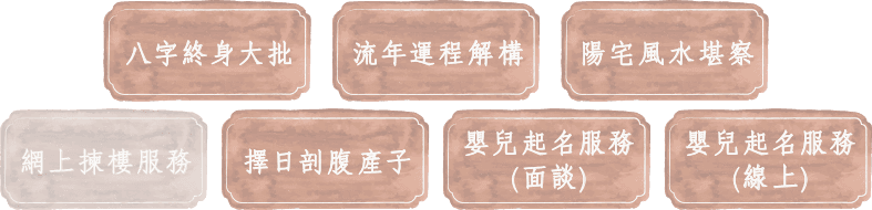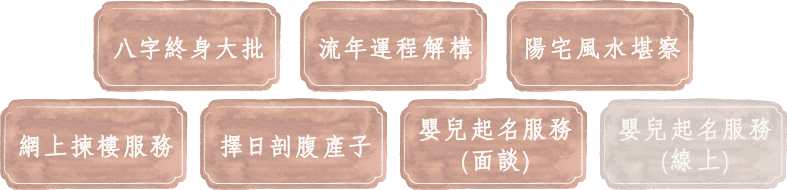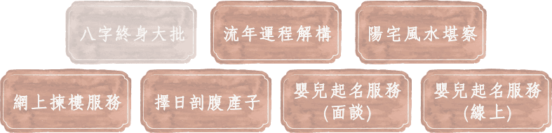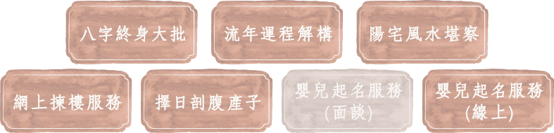 ②提供所有資料後,師傅將於三星期內,提供8-10個最佳的中文名字組合(提供名字為繁體字及粵語發音)給客人選擇